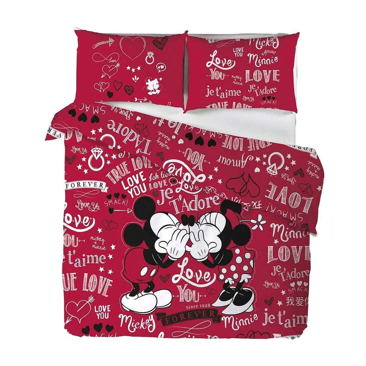 Minnie e Topolino sono la coppia per eccellenza che dura nel tempo. Questa bellissima parure copripiumino farà diventare la vostra camera da letto un’oasi di amore e felicità, grazie anche al suo colore rosso che da sempre rappresenta l’amore.