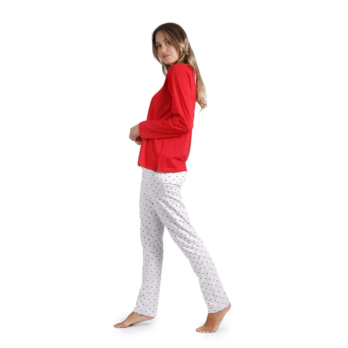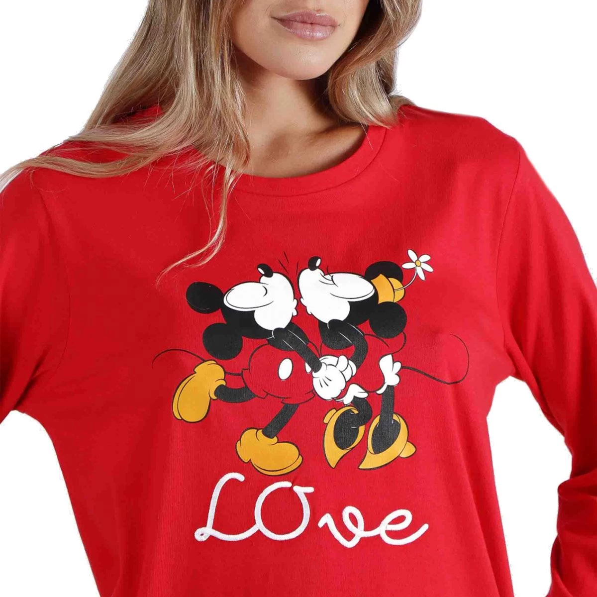 | Dettagli | La confezione contiene un pigiama da donna composto da: 1 maglia girocollo a manica lunga con stampa dei personaggi Disney (Topolino e Minnie) e scritta “Love” 1 pantalone lungo a fantasia con cuoricini con elastico in vita e laccio regolabile Jersey di cotone, fresco e leggero Adatto per la primavera, l’estate e l’autunno Confezionato in una scatola stampata |