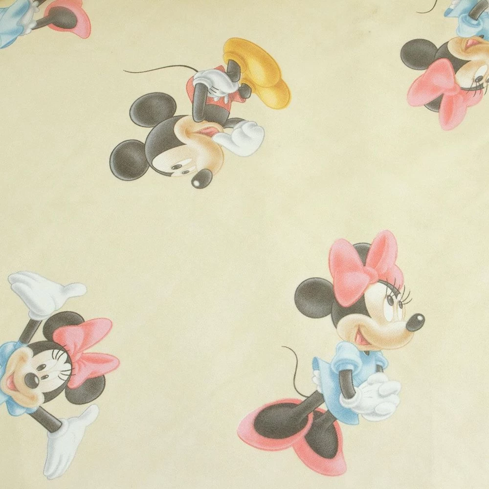 I personaggi Disney di Topolino e Minnie sono da sempre i beniamini di tutti i più piccini. Puoi vederli stampati su questo tessuto velato di colore beige colorato ed allegro.