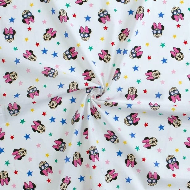 L’adorabile Minnie è la protagonista di questo tessuto al metro, perfetto per dare vita a tente idee differenti. Realizzato in puro cotone da 115 gr/mq, questo tessuto presenta una mano liscia e delicata ed è allo stesso tempo compatto e resistente.