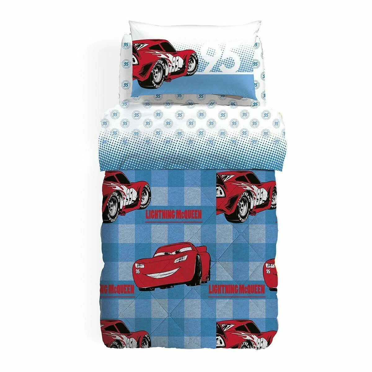 La leggendaria macchina rossa Cars è protagonista della trapunta invernale Cars 95 di Caleffi. Saetta Mc Queen è pronta in postazione di partenza per vincere la sua corsa.