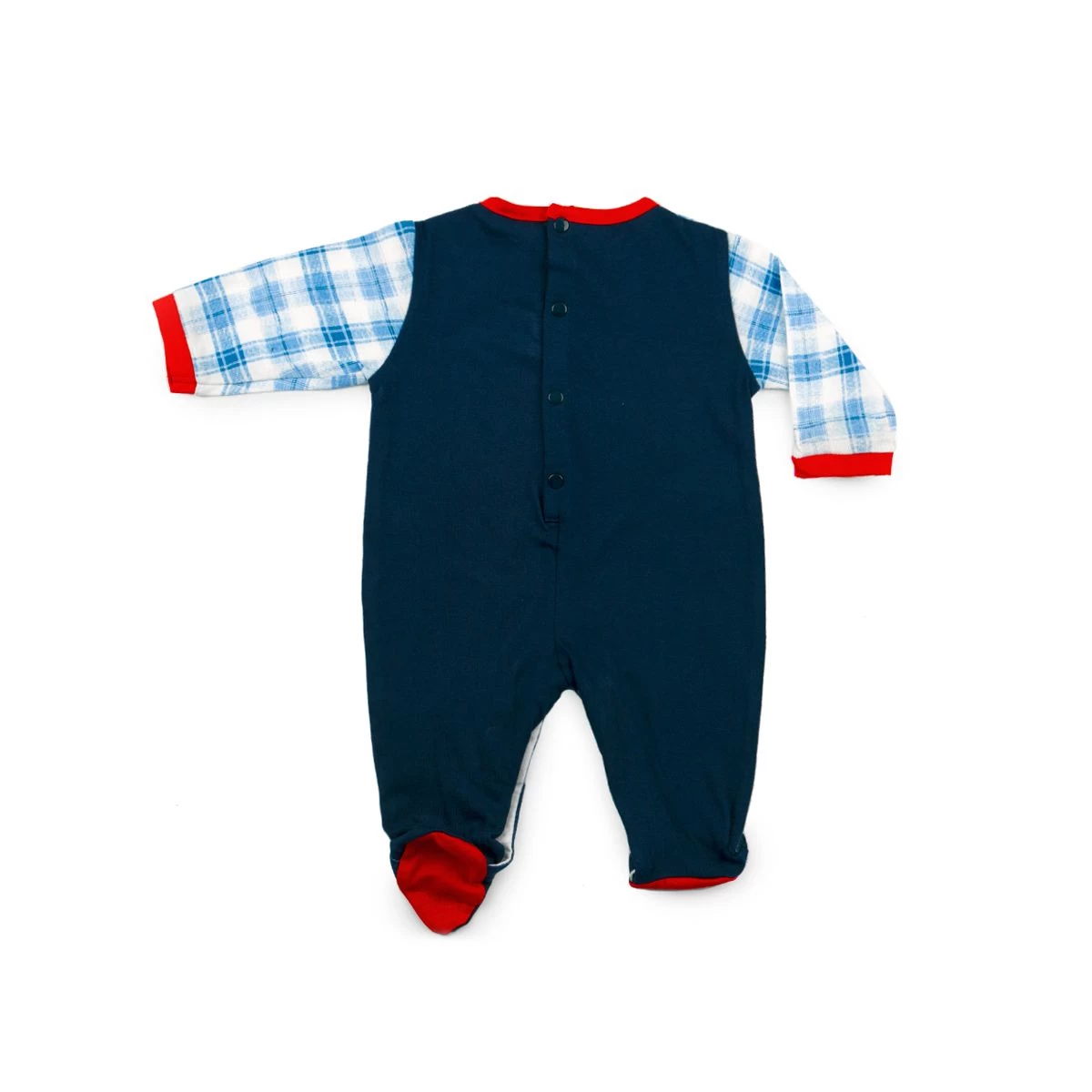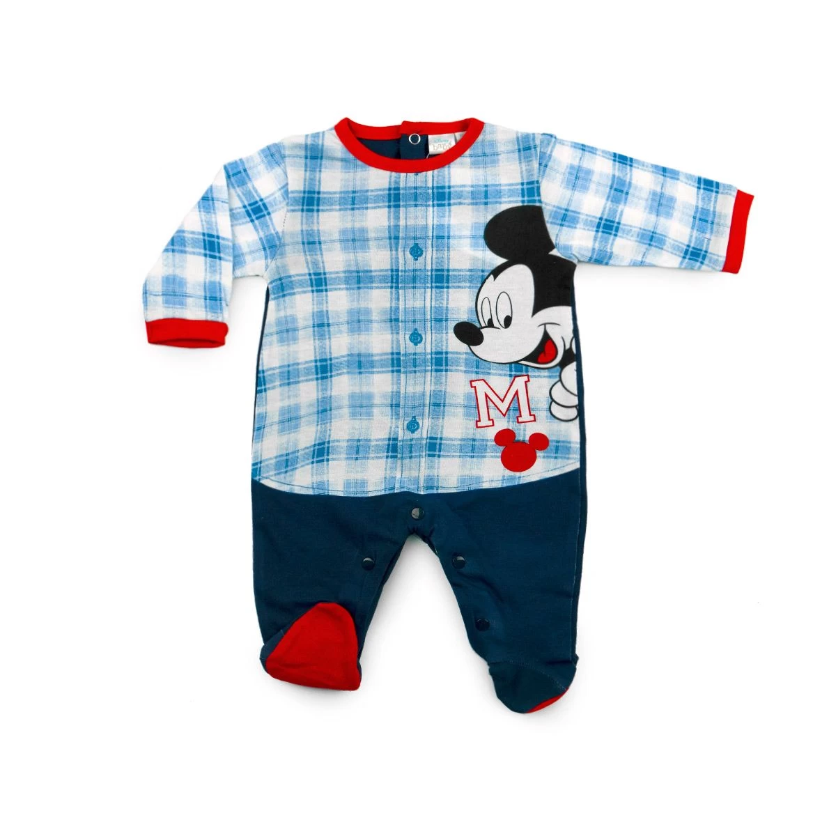 | Dettagli | La confezione contiene una tutina per neonato con piedini Stampa di Mickey Mouse Motivo a quadretti in contrasto di colore Collo e maniche in tinta unita Chiusura sulla schiena e cavallo con bottoni automatici Piedini in contrasto di colore Retro in tinta unita |